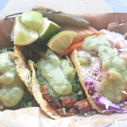 Enjoyed the quick service and fresh tacos here. There wasn't a line when we arrived for an early weekday lunch but it quickly got busy around noon. The place was clean and the staff was friendly. Order at the counter and they give you a number. Find your own seating and they will deliver the food to your table. Each taco was about $5. Street taco size and packed with flavor. There was seating inside and a small patio outside with some shade from umbrellas. Lots of street parking in the area and in the neighborhood.